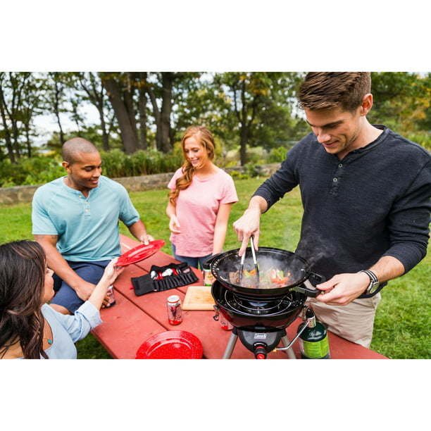 Durable double-fired enamelware with a timeless red-speckled design Dishware set includes 4 of each: 10 in. dinner plates, 12 oz. coffee mugs, and 6 in. bowls Flatware kit includes 4 of each: plastic-handled forks, spoons, and knives in a roll-up pouch Dishwasher-safe for one-step cleanup