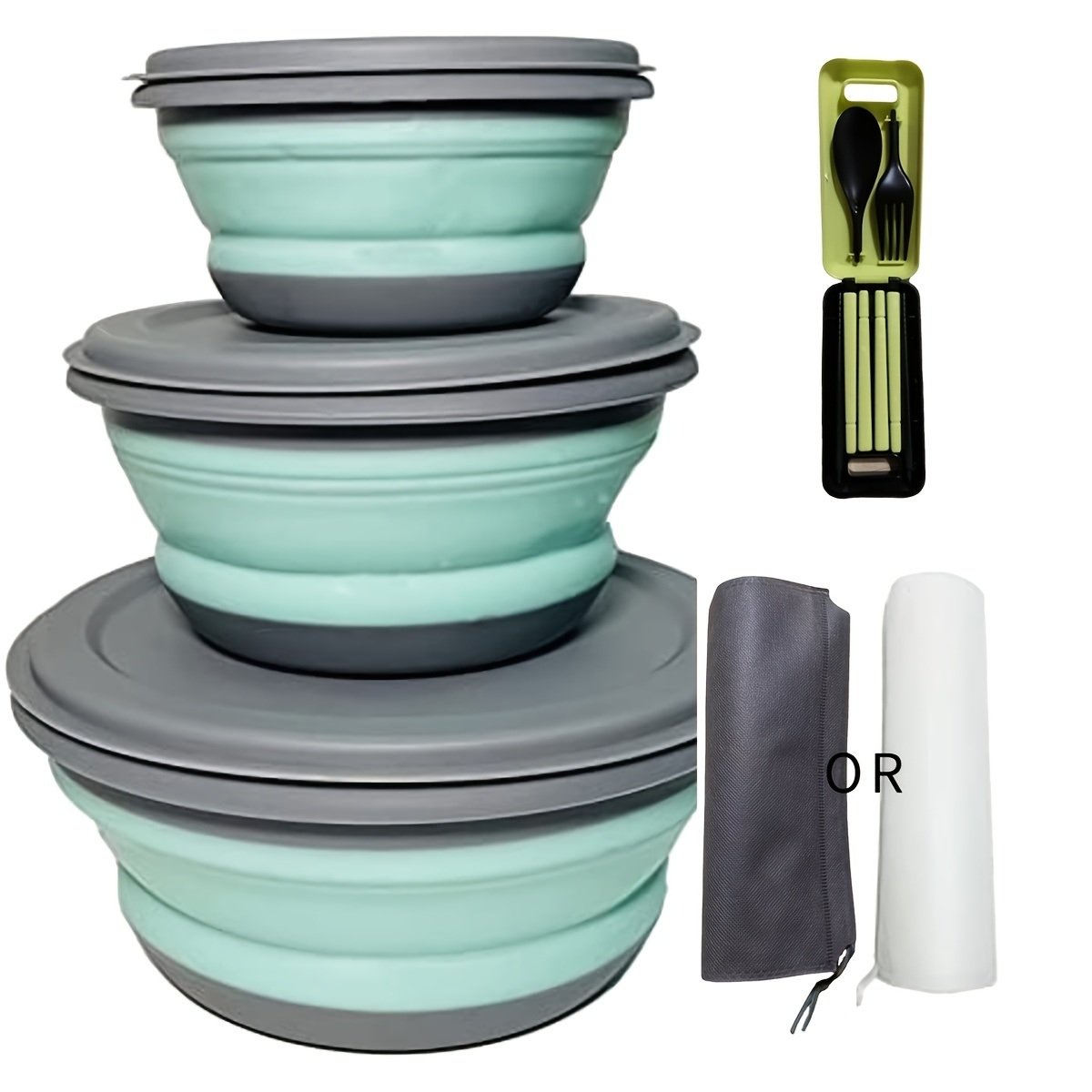 [What You Get ]A Set Of 3 Collapsible Silicone Camp Bowl With Lid; 1 Pcs Carry Bag And A Set Of 3 Pcs Foldable Tableware(1*fork; 1*spoon; 1*chopsticks).Ideal For Preparing Or Storing Food.