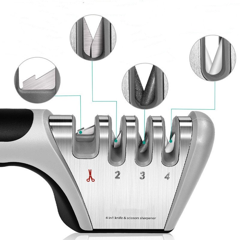 The4N1 Knife Sharpenerhas 4 uniquely designed slots each with its own purpose.