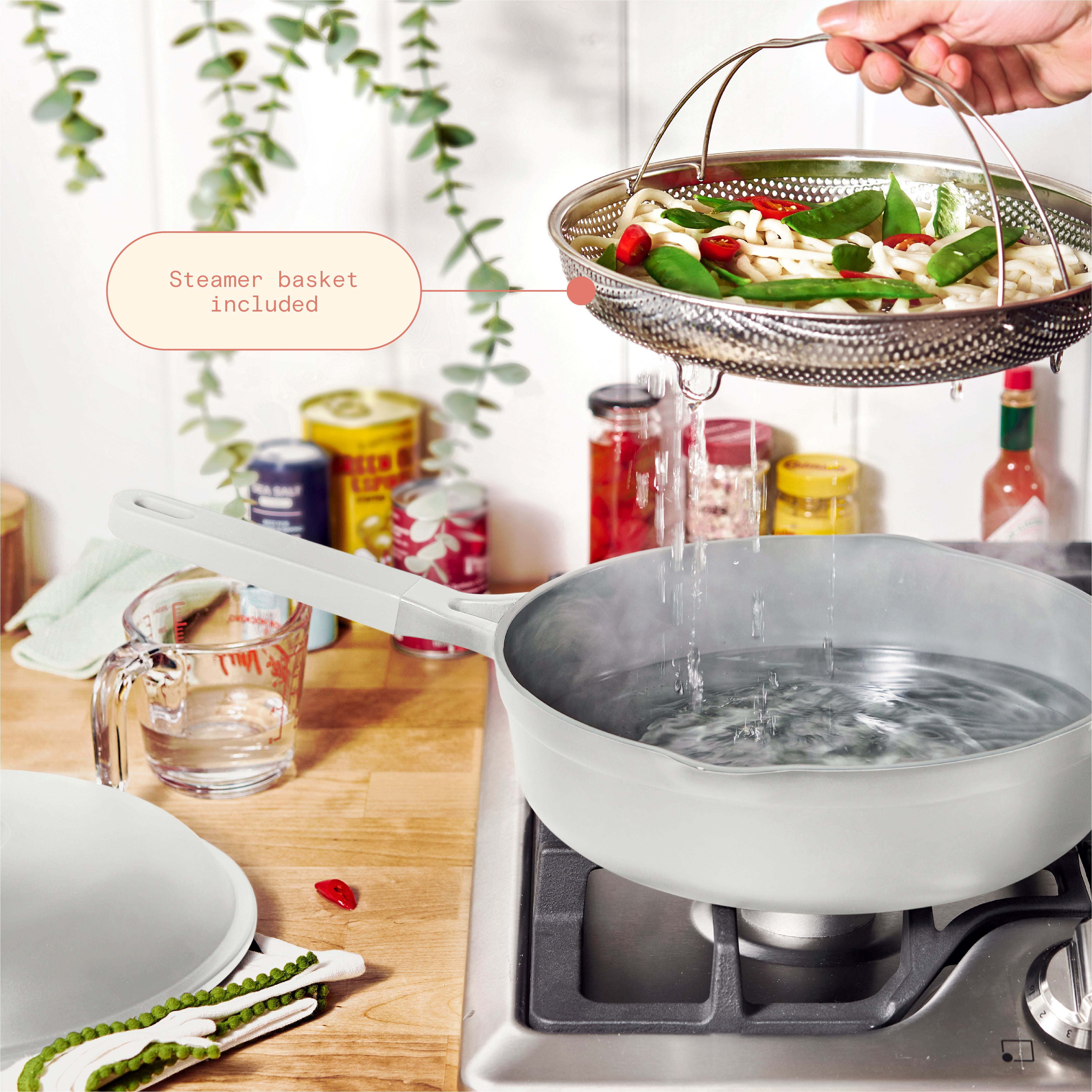 All-in-One 4 QT Hero Pan with Steam Insert, 3 Pc Set, Black Sesame by Drew Barrymore