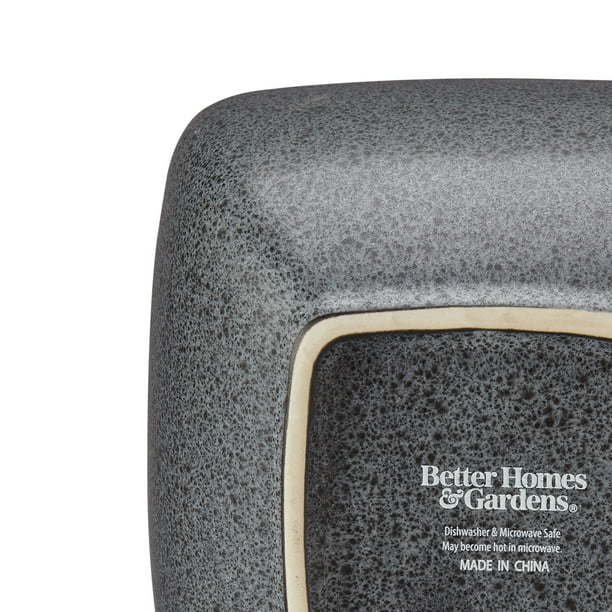 Make a bold style statement with the Better Homes & Gardens Dark Gray Square-Shaped Stoneware Cereal Bowl. Crafted with strong, durable stoneware material, this dinner bowl turns any table setting into a cool, edgy masterpiece. Finished in dark gray with unique mottled details, courtesy of the reactive glaze finish, this everyday essential adds an artistic flair to your kitchen and dining room decor. You'll love how easily this modern dinner bowl elevates any dining experience. Plus, this set's not only easy on the eyes — it's also easy to care for. This bowl is microwave and dishwasher safe to easily heat up leftovers and simplify post-meal cleanup.