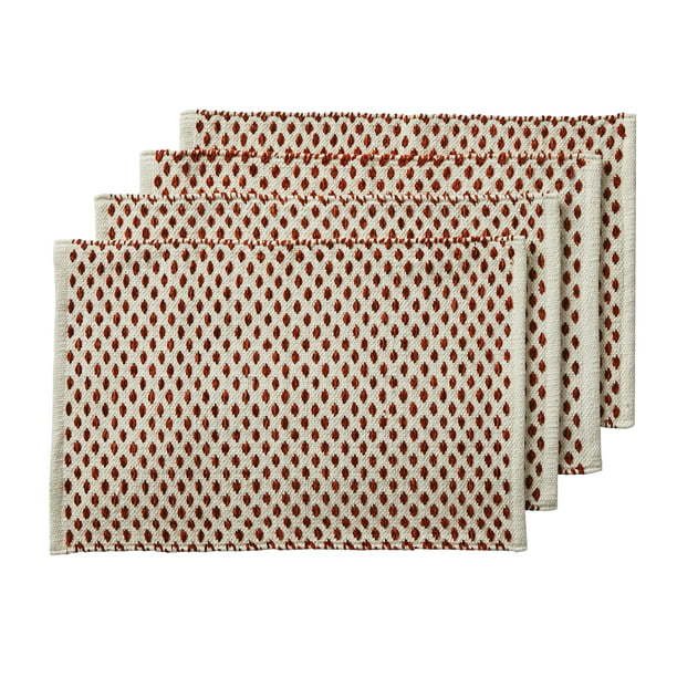 Set includes: 1 table runner (14 x 72 inches), 4 placemats (14 x 20 inches each), 4 cloth napkins, 4 napkin rings