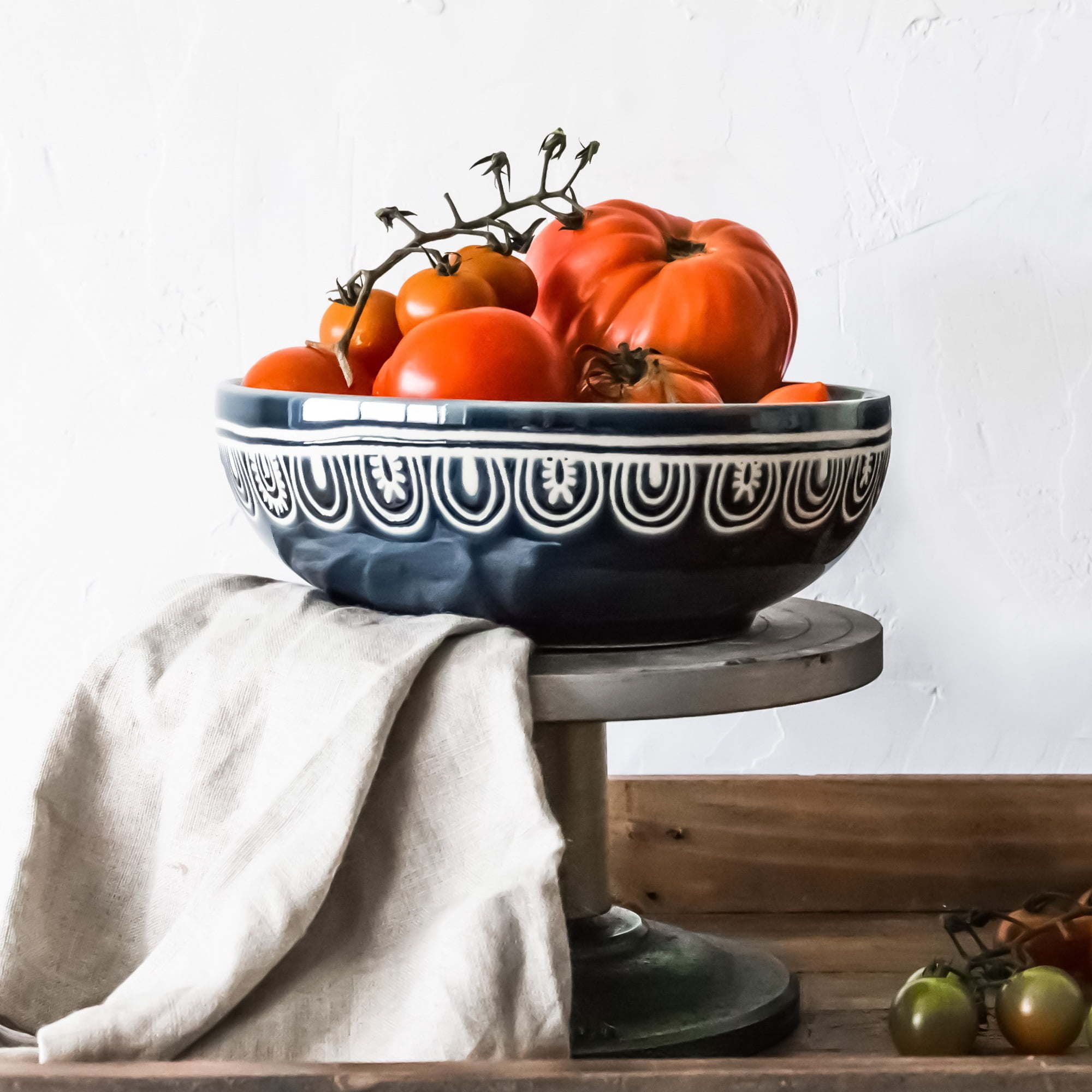Better Homes & Gardens Teal Medallion Serve Bowl Better Homes & Gardens Teal Medallion Serve Bowl