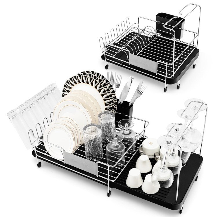 Stainless Steel Expandable Dish Rack with Drainboard and Swivel Spout