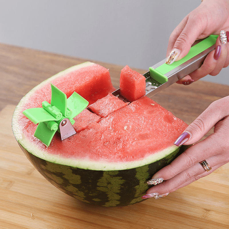 Home > Watermelon Knife Stainless Steel Pinwheel Design Easy To Cut Watermelon Slices Kitchen Gadgets Salad Fruit Slicing Knife Tool